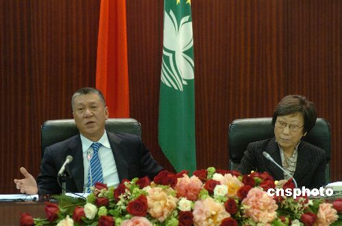 十一月十四日,澳門特首何厚鏵在立法會就特區(qū)政府2008年財政年度施政報告的內(nèi)容回答議員們的發(fā)問。右為澳門立法會主席曹其真。中新社發(fā) 史利 攝