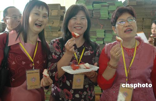 十一月二十九日,臺南縣十二家媒體記者參觀海口金德豐臺資農場時,品嘗該農場出產的蓮霧,稱贊其品質與臺灣的一樣鮮甜。中新社發 王辛莉 攝