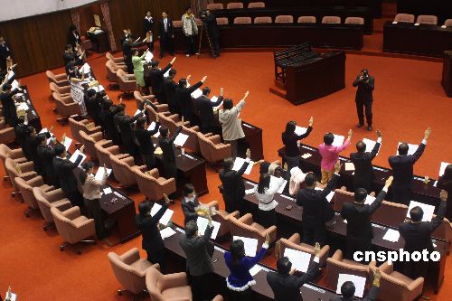 2月1日,臺灣第七屆“立法委員”辦理報到并宣誓就職。圖為議場內(nèi)舉行宣誓就職儀式。中新社發(fā) 耿軍 攝