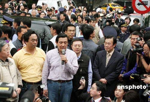 圖:馬英九投票后接受媒體采訪