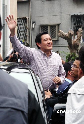 馬英九在臺北一個投開票所投票后,離去時向民眾揮手致意。
