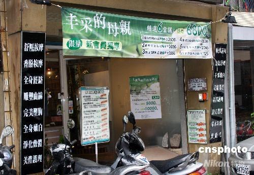 母親節期間,臺北市的商家紛紛借機做生意,圖為一家美容店推出的“豐采的母親”美容系列。中新社發 陳立宇 攝