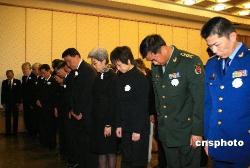 當地時間19日下午2時28分,旅英華人華僑、中資機構和留學生代表在中國使館內,和中國外交官一起默哀三分鐘,沉痛悼念在四川大地震中遇難的同胞。圖為默哀現場。中新社發 李鵬 攝