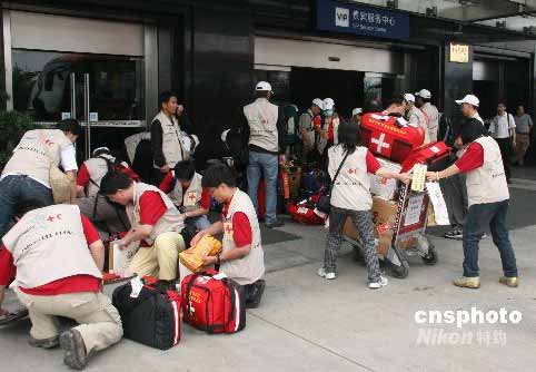 結(jié)束在四川地震災(zāi)區(qū)五天的醫(yī)療救援工作后,臺灣紅十字醫(yī)療隊一行三十七人,五月二十五下午乘飛機離開四川,返回臺灣。中新社發(fā) 齊彬 攝