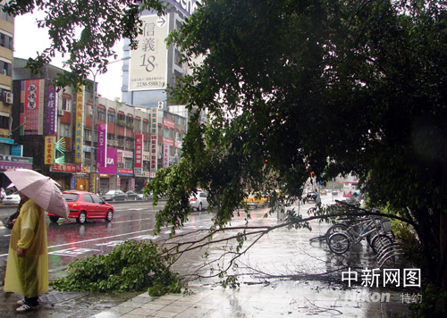 九月十四日,臺風“森拉克”在臺島徘徊不去,此次臺風風大雨量更大,臺北街頭不時可見“森拉克”留下的“痕跡”。曾福志 攝