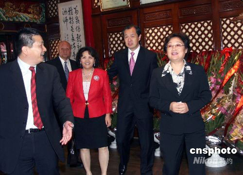 法國僑界九月十六日晚在巴黎舉行盛大歡迎會,歡迎中國國務院僑辦主任李海峰率團訪法。中新社發 吳衛中 攝