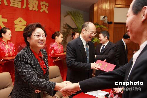 9月28日,國務院僑辦在北京召開僑辦系統抗震(雪)救災先進表彰電視電話會議,對全國僑辦系統在抗震(雪)救災斗爭中表現突出的50個先進集體和100名先進個人予以表彰。中新社發 鄭雄增 攝