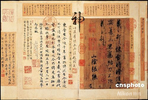 為慶祝故宮博物院院慶,臺(tái)北故宮將于十月十日舉辦《晉唐法書名跡》特展。將唐摹《快雪時(shí)晴帖》、《平安何如奉橘帖》與《遠(yuǎn)宦帖》三件珍貴墨跡同時(shí)展出,這在故宮的歷史上尚屬首次。中新社發(fā) 耿軍 攝