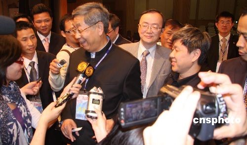原全國人大常委會副委員長許嘉璐3月21日下午抵達臺北,出席“第三屆海峽兩岸客家高峰論壇”。許嘉璐此次訪問臺灣是以葉圣陶研究會名譽會長的身份。圖為許嘉璐在論壇上受到大批記者和客家鄉親包圍。中新社發 耿軍 攝