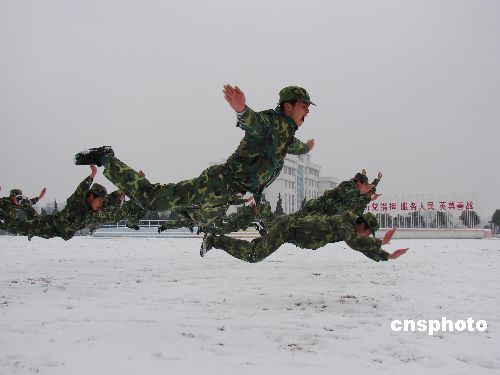 1月16日,濟(jì)南空軍某飛行學(xué)院某部警通連官兵結(jié)合軍事訓(xùn)練開展文體活動(dòng)。時(shí)值“三九”寒天,江淮大地普降大雪,而濟(jì)南空軍某飛行學(xué)院訓(xùn)練場上的官兵們斗志昂揚(yáng)。中新社發(fā) 耿國慶 攝