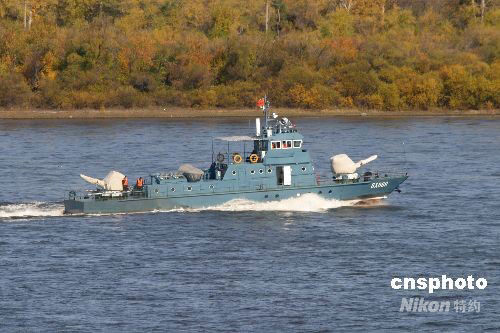 2008年10月4日,駐黑河某邊防巡邏艇大隊(duì)首批40余艘執(zhí)勤船艇及官兵,圓滿完成2008年度中俄界河黑龍江明水期巡邏執(zhí)勤任務(wù)后勝利凱旋。進(jìn)入10月,黑龍江上游江面即將結(jié)冰封凍,駐守在中俄三千里界江上的執(zhí)勤船艇官兵陸續(xù)返航。中新社發(fā) 邱齊龍 攝