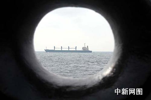 圖:“海口”號導彈驅逐艦護航商船前行