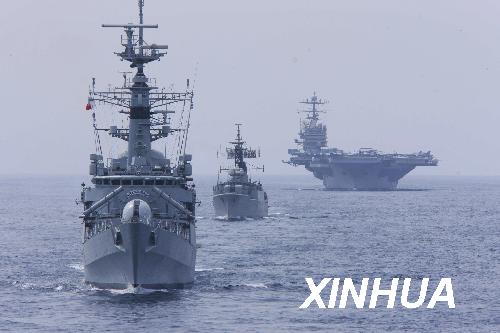 3月11日,“和平-09”多國聯(lián)合軍演海上實兵演習繼續(xù)實施,陣勢壯觀的海上閱兵將演習推向高潮。查春明 攝