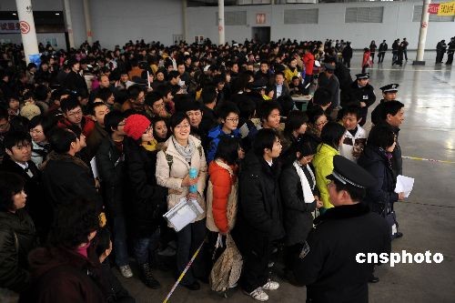 2009年2月4日,在山東濰坊富華國際展覽中心“藝考濰坊報名點”,參加2009年省外院校藝術專業考試的考生正在排隊報名。2009年藝考將于2月5日正式開考,歷時半個月。據了解,今年藝考山東省共報名96000人左右,濰坊市報名11000余人。中新社發 王志德 攝