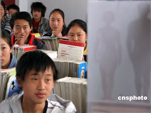 4月16日,河南省博愛縣磨頭鎮(zhèn)計(jì)生辦人員在為初級中學(xué)九年級學(xué)生講解青春期生殖健康。近期,該計(jì)生辦圍繞學(xué)生青春期一些問題,結(jié)合計(jì)劃生育,舉辦多場青春期教育講座,采用教材、掛圖、模型等形式,為全校1000多名中學(xué)生介紹人體生理結(jié)構(gòu),解釋青春期變化和生殖健康知識,使學(xué)生正確了解自身的生理特點(diǎn)、發(fā)育中的生理變化及各種保健知識,解除心中疑惑,為青少年健康成長起到重要作用。 中新社發(fā) 程全 攝