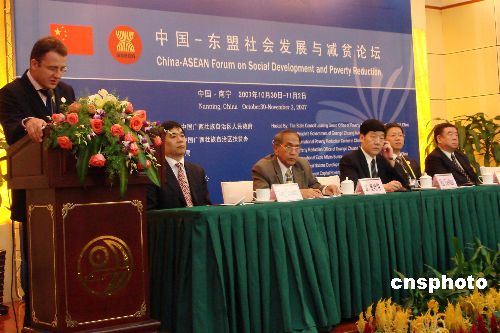 十月三十日,由中國國務院扶貧辦和廣西壯族自治區人民政府共同舉辦的中國-東盟社會發展與減貧論壇在廣西南寧正式開幕。中國和東盟十國主管扶貧工作的高級官員、社會發展和減貧領域的專家學者及企業家等一百余人就“推進區域社會發展與減貧交流合作”主題進行研討。中新社發 黃艷梅 攝