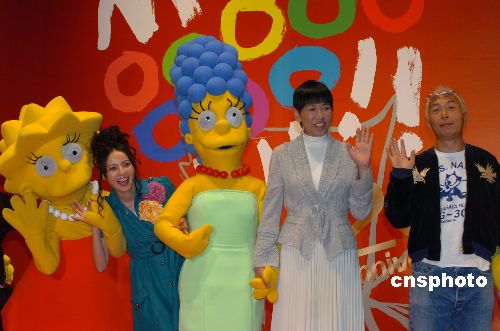 圖為美國動畫片《辛普森一家》日語版配音演員和田明子(右二)等出席開幕式。中新社發 滕劍峰 攝