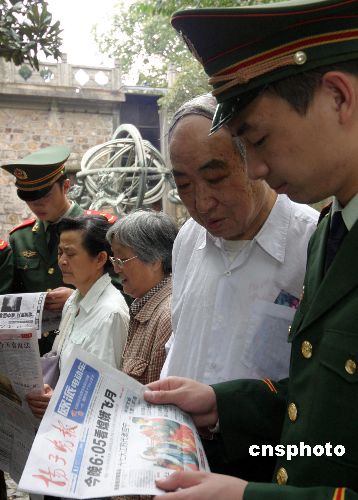 10月24日,擔負南京中科院紫金山天文臺守衛任務的武警江蘇總隊某部官兵在向游客講解月球相關天文知識、分發天文知識的宣傳資料。當天嫦娥一號即將發射。中新社發 唐占軍 攝