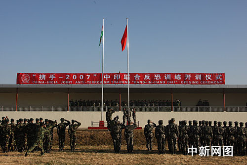 12月21日,“攜手——2007”中印陸軍聯合反恐訓練在中國昆明某訓練基地正式拉開帷幕。張雷 攝
