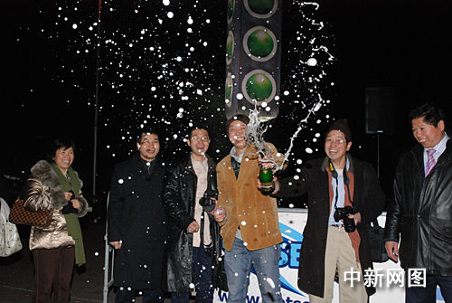 旅捷青田同鄉會會長鄭朝偉(右2) 帶領一組青田老鄉驅車230公里來到米庫洛夫參加12月20日夜晚申根東擴慶典。