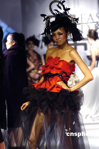 12月22日晚,上海時裝周推薦知名設(shè)計師Keeven/翟晏辛在“尚街LOFT”舉辦一場名為“胭—顏—演—晏”之暗夜“晶”靈的主題時裝秀。發(fā)布會服裝以黑色為主,凸顯了暗夜主基調(diào)。中新社發(fā) 董鴻景 攝