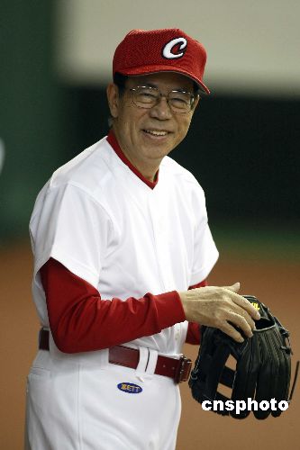 圖:溫家寶與福田康夫共練棒球投球(2)