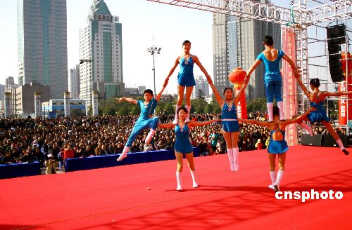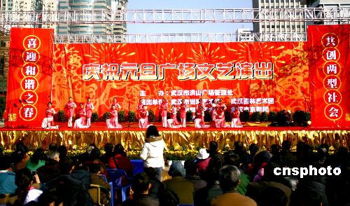 12月31日上午,武漢市在洪山廣場舉辦了主題為“共創兩型社會、喜迎和諧之春”綜藝節目,迎接新年到來。中新社發 余火焰 攝