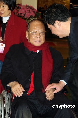 三月四日上午,十屆全國人大常委曾憲梓離開駐地,前往北京人民大會堂出席十一屆全國人大一次會議預備會。中新社發 齊彬 攝
