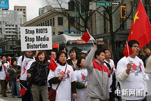 當地時間29日下午,加拿大溫哥華部分中國留學生和華人代表組織集會活動,現場播放錄像揭露部分西方媒體對西藏事件的不公正報道。 中新社記者呂振亞攝