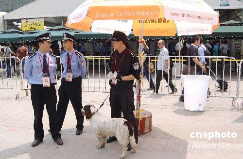 4月16日,為保證第103屆廣交會的安全,本屆廣交會參照民航標準實施進館安檢。中新社發 柯小軍 攝