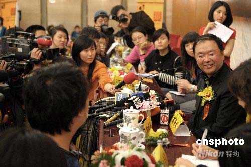 4月17日,新《三國(guó)演義》電視劇在北京召開(kāi)新聞發(fā)布會(huì),中國(guó)導(dǎo)演高希希正式出任總導(dǎo)演,媒體記者爭(zhēng)相采訪高希希。他表示“接手《三國(guó)演義》圓了自己兒時(shí)的一個(gè)夢(mèng)想”,“司馬懿之死就是該劇的結(jié)束。他代表著三國(guó)時(shí)代的終結(jié),中國(guó)統(tǒng)一時(shí)代的來(lái)臨”。高希希曾執(zhí)導(dǎo)過(guò)《歷史的天空》、《搭錯(cuò)車(chē)》、《新上海灘》、《甜密密》等熱門(mén)電視劇。據(jù)悉,該劇是迄今為止中國(guó)電視史上投資數(shù)額最大的電視劇之一。當(dāng)日,中共中央宣傳部、國(guó)家廣電總局的有關(guān)官員出席了發(fā)布會(huì)。中新社發(fā) 廖攀 攝