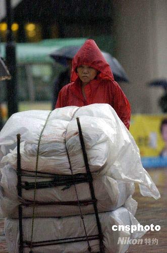 狂風暴雨給市民外出帶來很大不便。中新社發 譚達明 攝