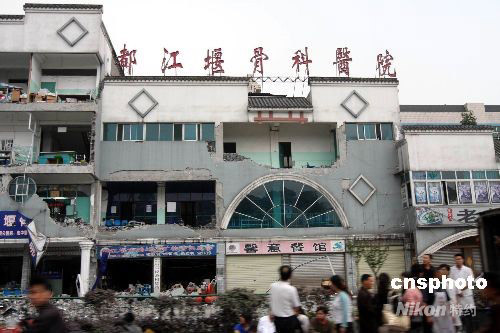 北京時間5月12日14時28分,在四川汶川縣(北緯31度,東經103.4度)發生7.8級地震。都江堰市區多處房屋受到地震損壞。中新社發 黃榮 攝