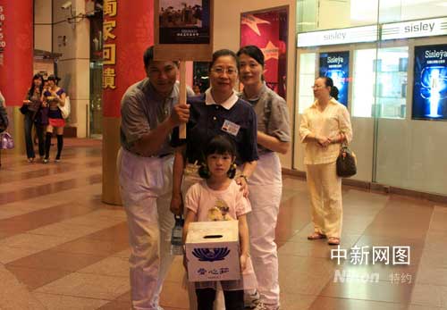 十七日晚,慈濟臺北分會的義工在臺北市的街上為四川震災與緬甸風災募款,兒童也加入行列。作 者:陳立宇