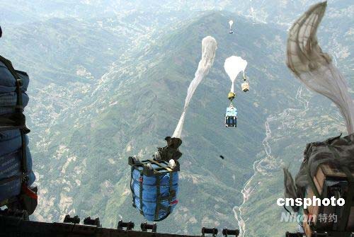 圖:中國空軍向四川災區空投帳篷成功(2)