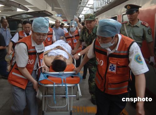 組圖:地震災區(qū)首趟運送傷員專列順利抵達重慶(5)