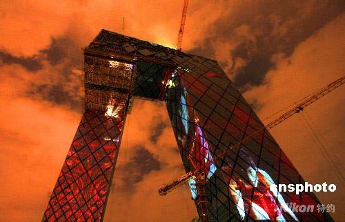 6月1日凌晨,劉翔的巨幅畫像投影在尚未竣工的央視新大樓樓體上,這是央視新大樓樓體首次投影。除田徑運動員劉翔之外,此次投影的還有籃球運動員易建聯、網球運動員李娜、跆拳道運動員陳中、拳擊運動員鄒市明等,眾多體育明星“點亮”北京夜空,以體育精神鼓勵中國加油。 中新社發 楊可佳 攝