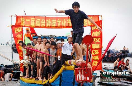 六月八日,是中華民族古老的傳統(tǒng)節(jié)日端午節(jié),僑鄉(xiāng)石獅人延續(xù)閩臺(tái)對(duì)渡文化習(xí)俗,舉辦第二屆閩臺(tái)對(duì)渡文化節(jié)暨蚶江海上潑水節(jié),成為兩岸人民交融情誼的獨(dú)特方式。中新社發(fā) 傅丹丹 攝