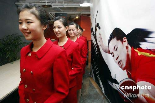 圖:15位準(zhǔn)空姐北京演練奧運(yùn)頒獎(jiǎng)儀式 (3)