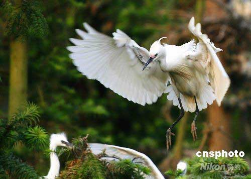 “兩只黃鸝鳴翠柳,一行白鷺上青天”,近日,在福安市灣塢鄉(xiāng)郭厝塘村林間,繁衍棲息著數(shù)千只白鷺、蒼鷺。它們?nèi)粘龆琛⑷章涠ⅲ瑘雒嫖禐閴延^。成年白鷺或四處覓食、哺育后代,或繞枝翔集、起舞蹁躚,雛鷺們或蜷縮鳥巢、嗷嗷待哺,或羽翼漸豐、展翅欲飛,吸引了眾多觀鳥者和攝影愛好者。中新社發(fā) 王志凌 攝