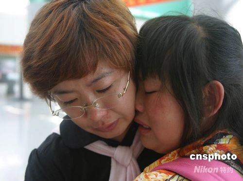 孩子們依依不舍與一直伴隨他們的記者姐姐話別。中新社發 付美斌 攝
