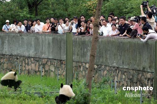 6月25日上午,臺北市長郝龍斌一行到上海野生動物園,看望大熊貓。中新社發 潘索菲 攝