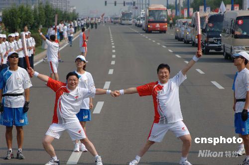 圖:呼和浩特火炬手優美舞姿交接奧運火炬