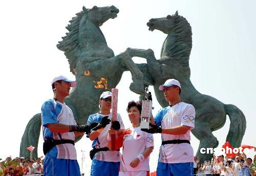 圖:奧運火炬在鄂爾多斯的傳遞結束