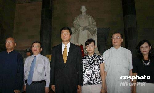 臺北縣長周錫瑋率臺北縣南京參訪團一行十人拜謁南京中山陵,在孫中山像前合影。中新社發 朱曉穎 攝