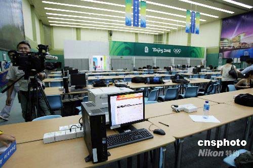 七月二十六日,位于沙田奧運(yùn)馬術(shù)比賽主賽場(chǎng)的新聞媒體中心啟用,設(shè)備齊全的場(chǎng)館提供新聞發(fā)布、無(wú)線(xiàn)網(wǎng)絡(luò)通訊、賽程成績(jī)公布等,方便各路媒體工作。中新社發(fā) 洪少葵 攝