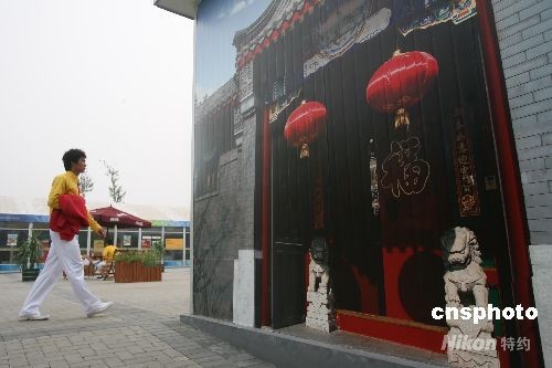 7月27日,北京奧運會的運動員之家——奧運村正式開村,來自205個國家和地區的16000名運動員和隨隊官員將逐步入住。圖為準備參加升旗儀式的中國運動員走過極具中國傳統特色的國際區。中新社發 武仲林 攝