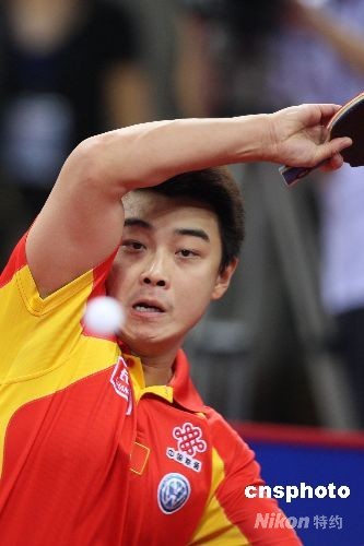 圖為王皓在男團比賽中輕松取勝。中新社發 盛佳鵬 攝