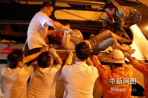 救援人員抓緊時間救人。作者:江耘