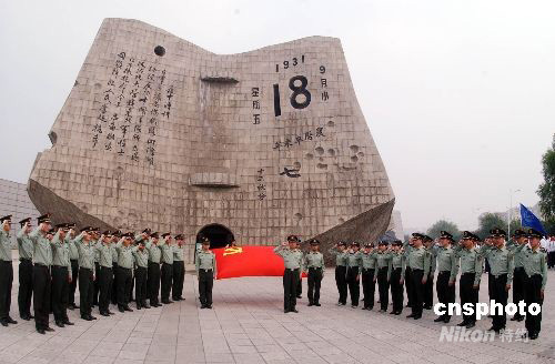 沈陽軍區某部官兵在“九·一八”歷史博物館莊嚴宣誓。中新社發 羅瀾 攝